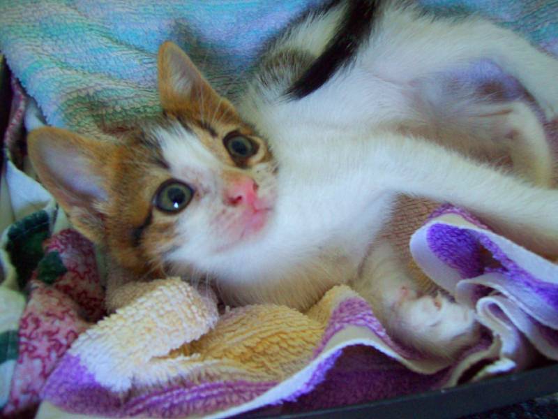Поздно вечером раздался душераздирающий крик котенка. По голосу было слышно, что котенок еще очень маленький. Побегав от окна к окну, мы локализовали откуда раздавался кошачий крик. Пока я вышла из дома и пошла по направлению крика, мой муж увидел , как три подростка подбрасывают котенка и бьют ногами как мяч.Грозный крик мужа (с матом) остановил их, и мне на встречу уже бежали великовозрастные долдоны. Малыш , сжавшись в комочек,и признаки жизни подал только тогда, когда я взяла его на руки.Он уже не мяукал, а только тихо постанывал.Конечно - я принесла его домой. Теперь у нас дома два найденыша. У Буси появился младший братишка. Мы назвали его Пифа ( Пифагор).