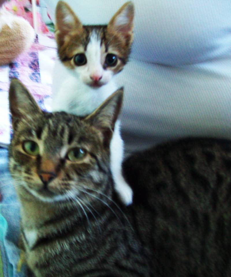 Пифа (Пиффагор) быстро осваивается в новом доме. Очень любопытный котенок. По началу Буся и Пифа вели себя настороженно.Теперь, спустя пять дней они сдружились и не отжодят друг от друга. Буся, как старная, всячески обхаживает маленького, ведет себя как нянька. Когда моем лапки Пифагору, он орет как резаный , будто его режут, Буся подбегает, начинает громко мяукать- требует, чтобы отпустили маленького, начинает его облизывать и покусывать- что ему очень нравится.